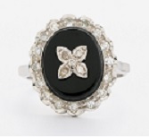 18 ct golden ring with onyx and diamonds