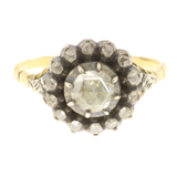 14 ct yellow golden and silver ring with rose cut diamonds
