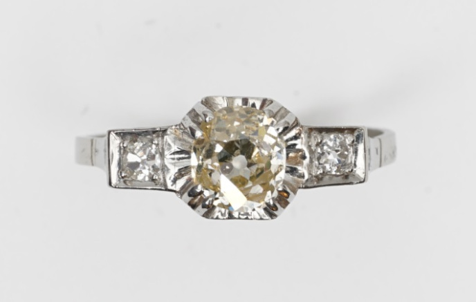 Platinum ring with old mine cut diamonds (0,8 ct)