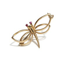 18 ct golden dragonfly brooch with ruby eyes