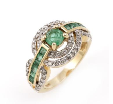 18 ct golden ring with emeralds and diamonds